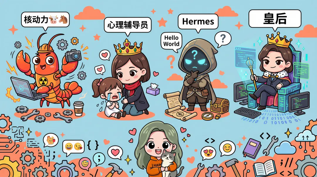 画了一张漫画示意图,大家凑合看吧。虽然工具很多,但是我的一人公司运转依然很艰难,没有网上大佬那种起飞的暴爽时刻,只有每天日复一日的忙碌+深耕+灵感挖掘+内容复盘+bug调试(每日一问龙虾为啥不回复我了) ,最近有朋友说我的朋友圈没有活人感,全是AI干货感觉像机器人,我想说有没有可能我已经没有生活了…当然这些心酸的话我憋回去了,没有说出口,对于朋友提的意见我只是淡淡回了一句ok。