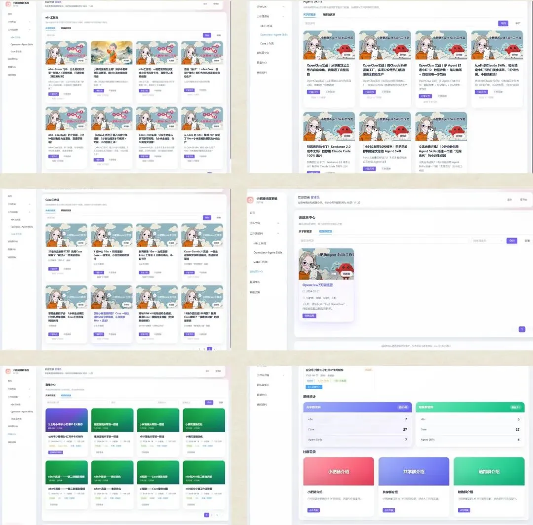 这个系统的核心就是把我之前做的工作流,skill、直播教学、训练营资料做集中归纳,之前这些资料都是放在飞书,四处分散,大家反馈找资料费劲。我也意识到了这一点,于是就花了一个月跟Codebuddy完成了这个系统。 有一说一这个系统在AI工具的加持下开发周期也就一周,主要是我平时精力太分散(一人公司大家懂的),于是断断续续弄了一个月才上线。