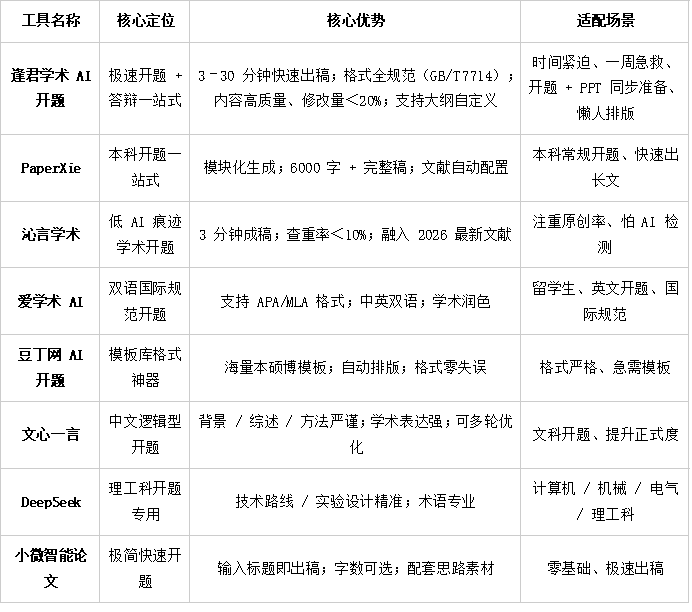 8 款 AI 开题报告工具核心实测对比表