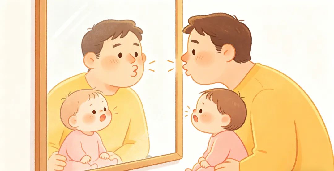 我还经常跟他玩镜子的表情游戏,我对着镜子做开心的样子,再做难过的样子,让他跟着我学,慢慢的他就认识这些不同的情绪了。