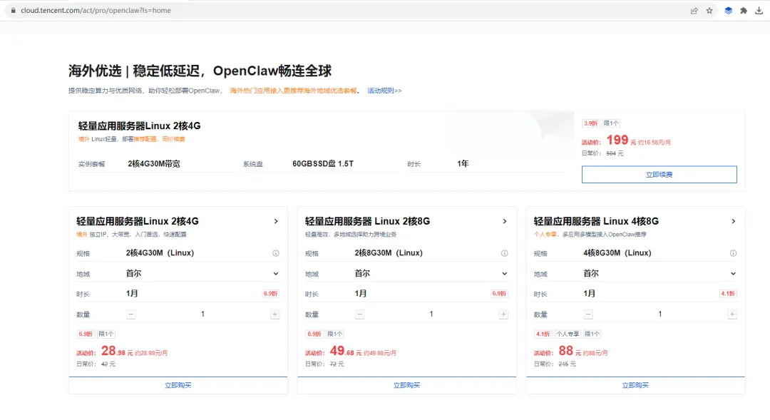 对于个人用户来说,这几乎就是跑 OpenClaw 的低门槛选择:便宜、够用、适合长期在线部署。