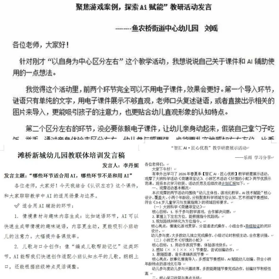 为提升教师游戏案例分析与实践反思能力,探索人工智能在幼儿园教学活动中的有效融入,促进教联体各园所间的深度交流与协同发展。2026年4月17日,荆州开发区联合街道中心幼儿园教联体组织开展了“聚焦游戏案例,探索Ai赋能”专题教研活动,教联体成员园代表教师及核心园全体教师共60余人参加。