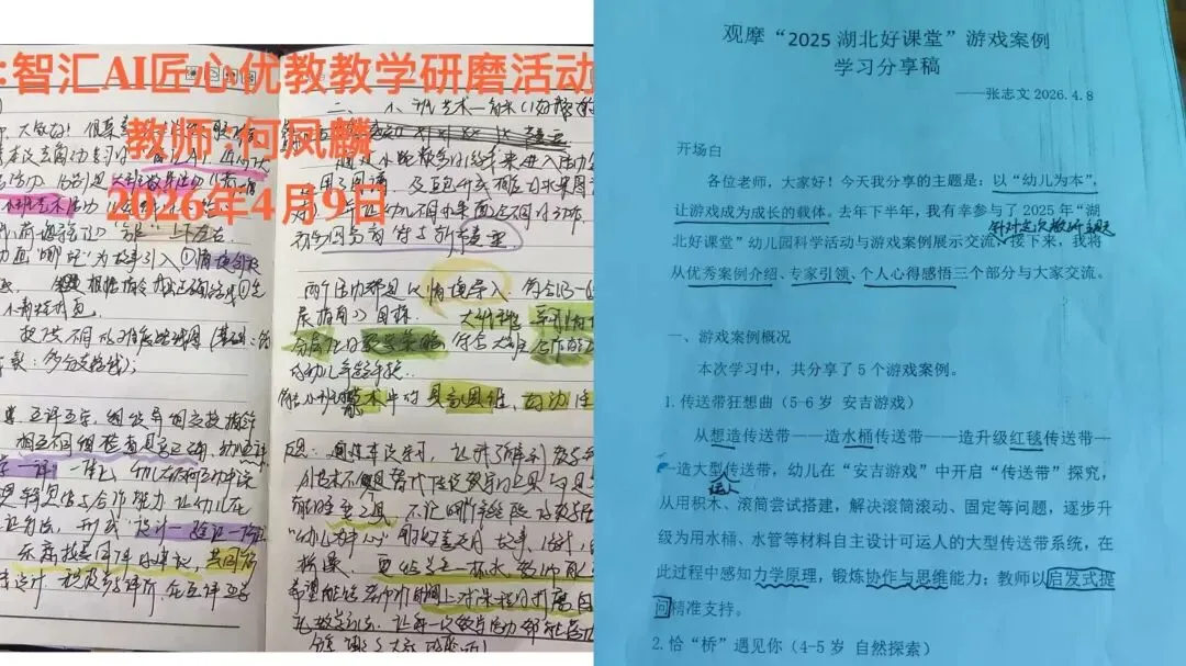 “游戏案例”和“AI赋能”分享环节,外出学习教师代表结合自身岗位实际反思不足及改进方向,分享了学习成果与心得体会,两轮分享内容充实、思考深入,为后续研讨提供了实践基础。