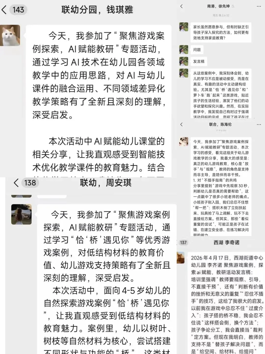 本次活动以游戏案例为切入点,推动教师深度反思教学实践;引入AI赋能新视角,激发教师对信息技术与教学融合的创新探索,有效提升了教联体教研的实效性与前瞻性,为后续园本课程优化及跨园协同发展奠定了良好基础。