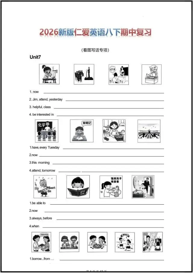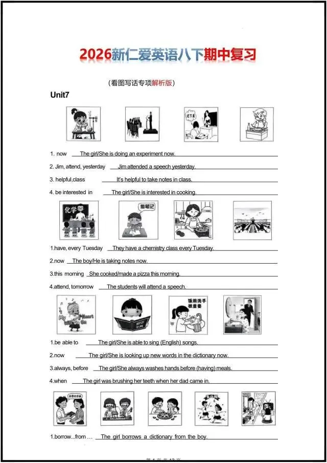 2026年仁爱版八下英语|期中专项复习(单元必背满分范文+阅读理解+看图写话)练习版+答案版,完整电子版可打印!