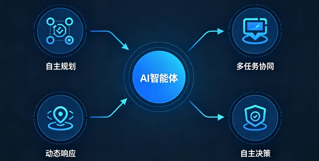 区别于传统工具类 AI,新一代智能体具备自主规划、多任务协同、动态响应环境变化的能力,能够基于海量数据自主推导结论、下达执行指令。
