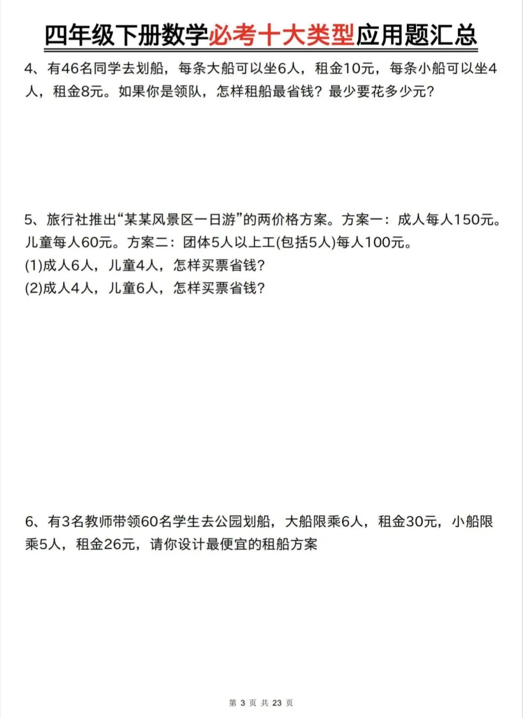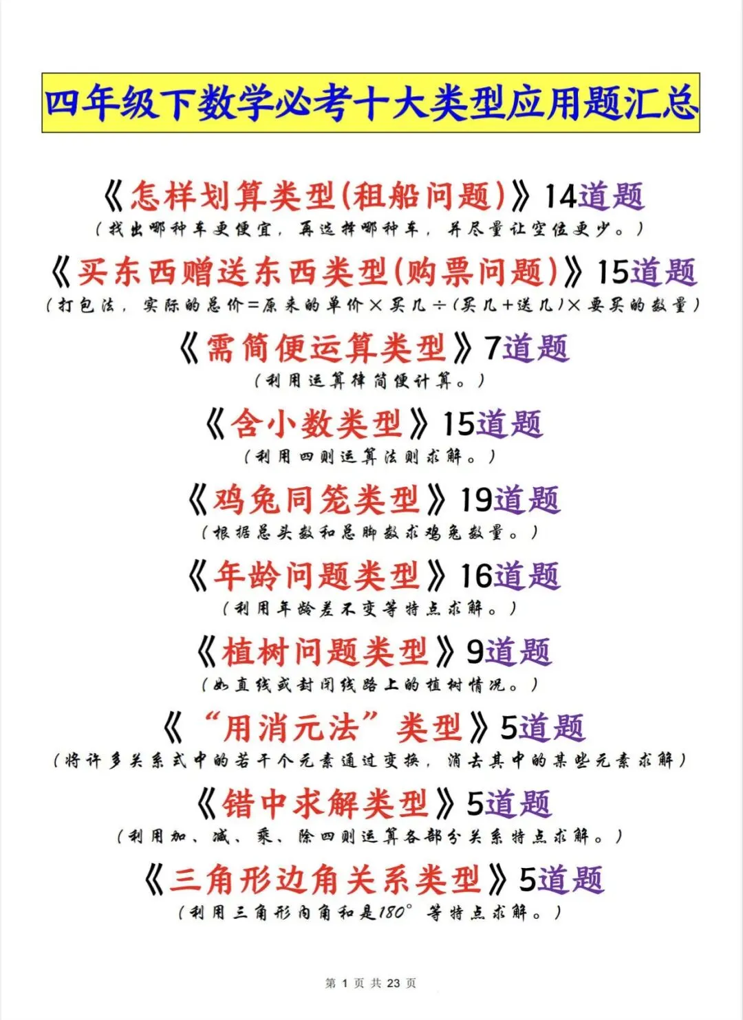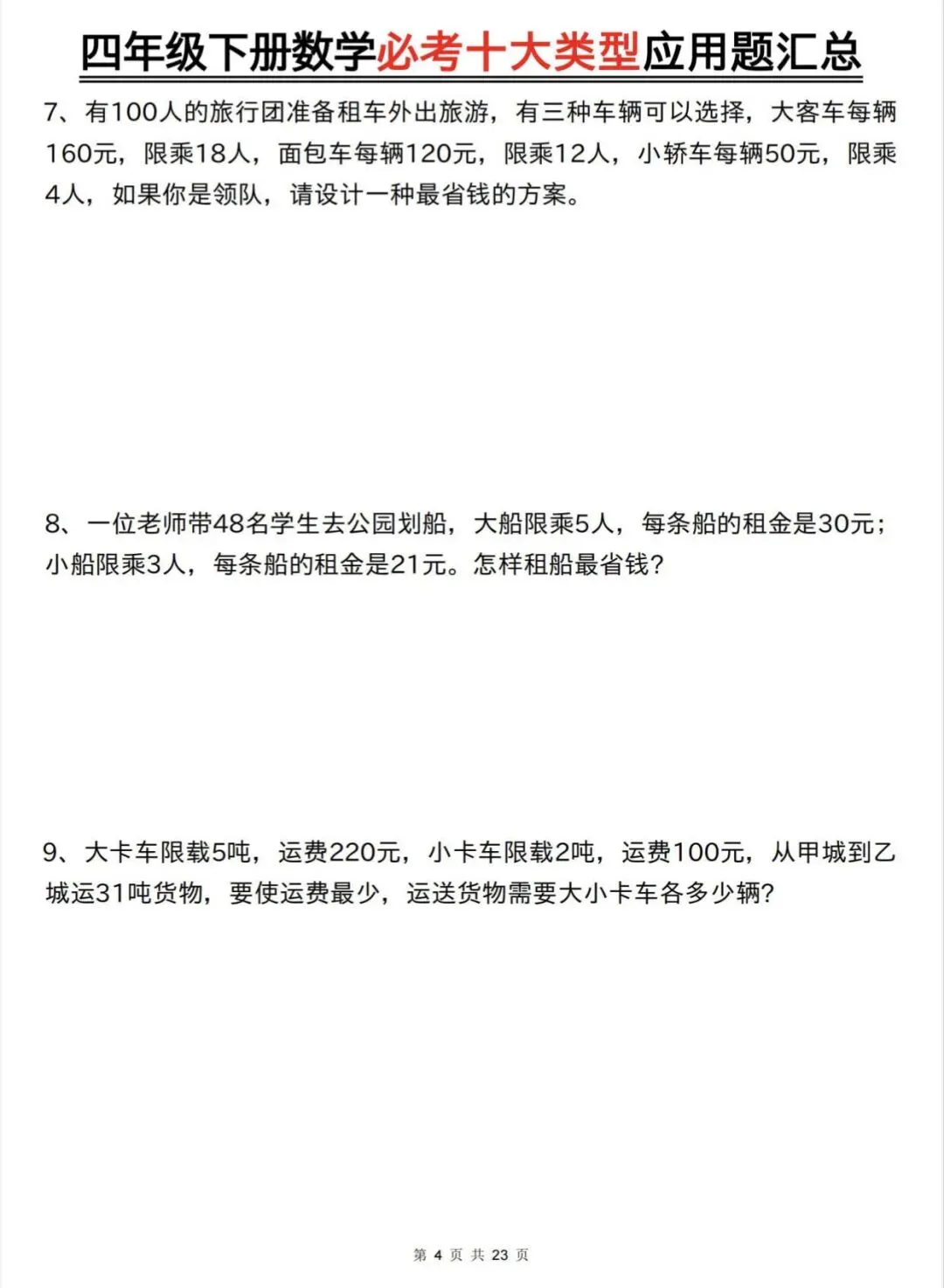 四年级下数学必考十大类型应用题汇总|可打印