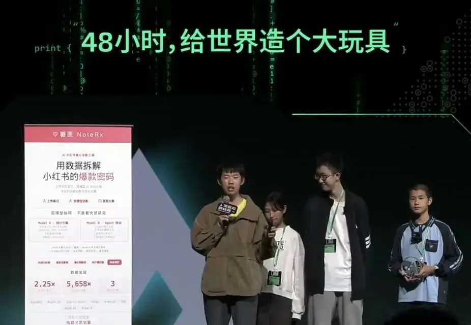 近日,小红书AI黑客松巅峰赛落下帷幕。与以往不同,这场汇聚众多专业开发者的赛事,最大的惊喜并非来自资深工程师,而是四位年仅十几岁的少年。