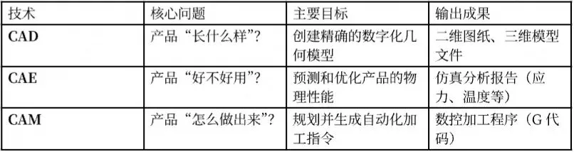 CAD、CAE 和 CAM 是现代工业设计与制造流程中三个紧密关联的核心技术,它们共同构成了从产品概念到最终成品的数字化闭环。
