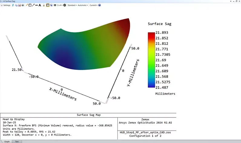 Ansys仿真还考虑了自由曲面光学元件所处的更广泛的环境参数,例如局部压力和温度,以便用户全面了解元件的性能表现。