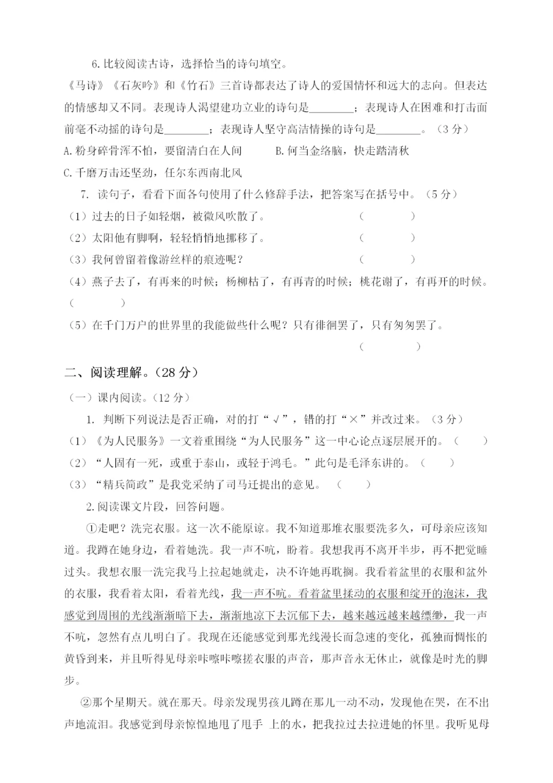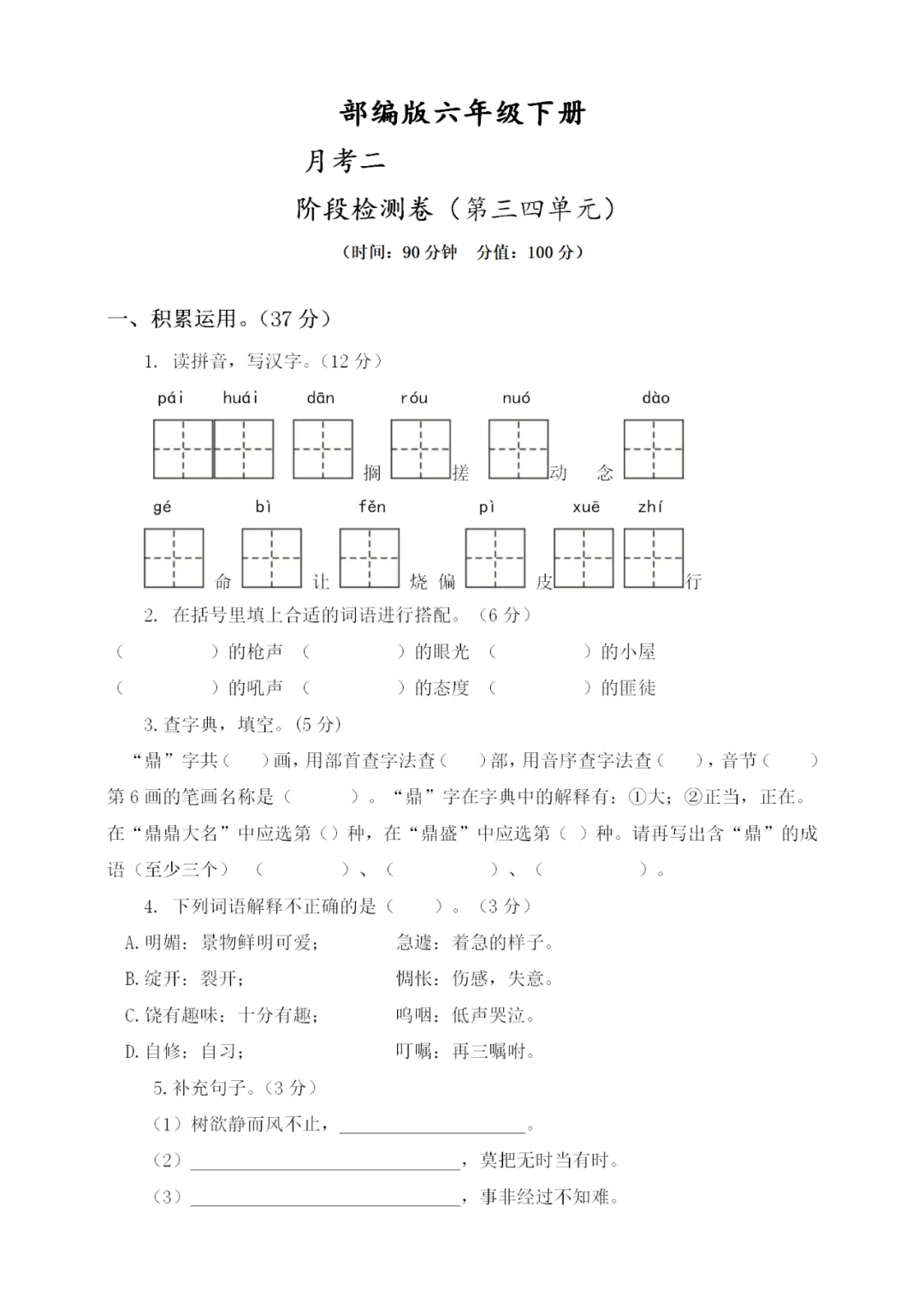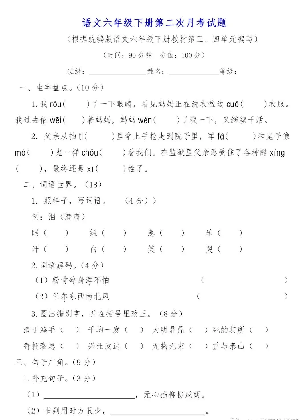 六年级下册第二次月考测试卷3套,免费下载! 课文朗读 微课学习 课件教案 生字字帖 每课一练 必背内容 课文划重点 课堂笔记 晨读晚背 ❗❗❗六年级下册第一次月考测试卷 温馨提示:保存图片打印或拉到文末下载电子版 声明:本公众号尊重原创,素材来源网络,好的内容值得分享,如有侵权请联系删除。更多资料请点击“中小学各学科上下册空中课堂、微课汇总”。 ▼ 三、四单元试卷练习 部编语文六(下)第三单元检测卷① 部编语文六(下)第三单元检测卷② 小学语文六(下)第三单元基础知识复习检测 部编语文六(下)第三单元检测卷③ 小学语文六(下)第三单元检测卷3套 部编版六(下):第三单元试卷 部编版六(下):第三单元试卷 部编版六(下):第三单元试卷 部编语文六(下)第四单元检测卷① 小学语文六(下)第四单元基础知识复习检测 部编语文六(下)第四单元检测卷② 部编语文六(下)第四单元检测卷③ 小学语文六(下)第四单元检测卷3套 部编版六(下):第四单元试卷 部编版六(下):第四单元试卷 部编版六(下):第四单元试卷 完整电子版下载打印 ▼ 方式一:长按识别上方二维码下载 方式二:若二维码失效,请关注公众号对话框回复:月考试卷 点击下方阅读原文进入六年级下册资料合集