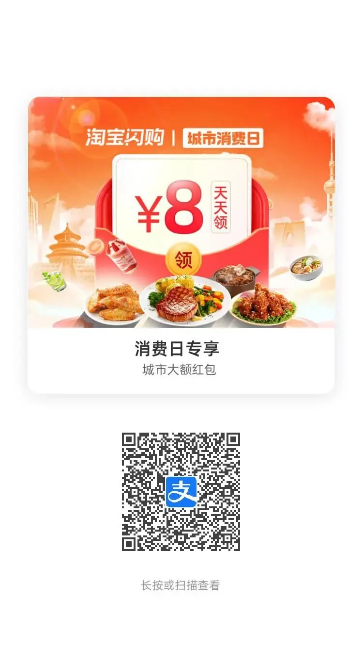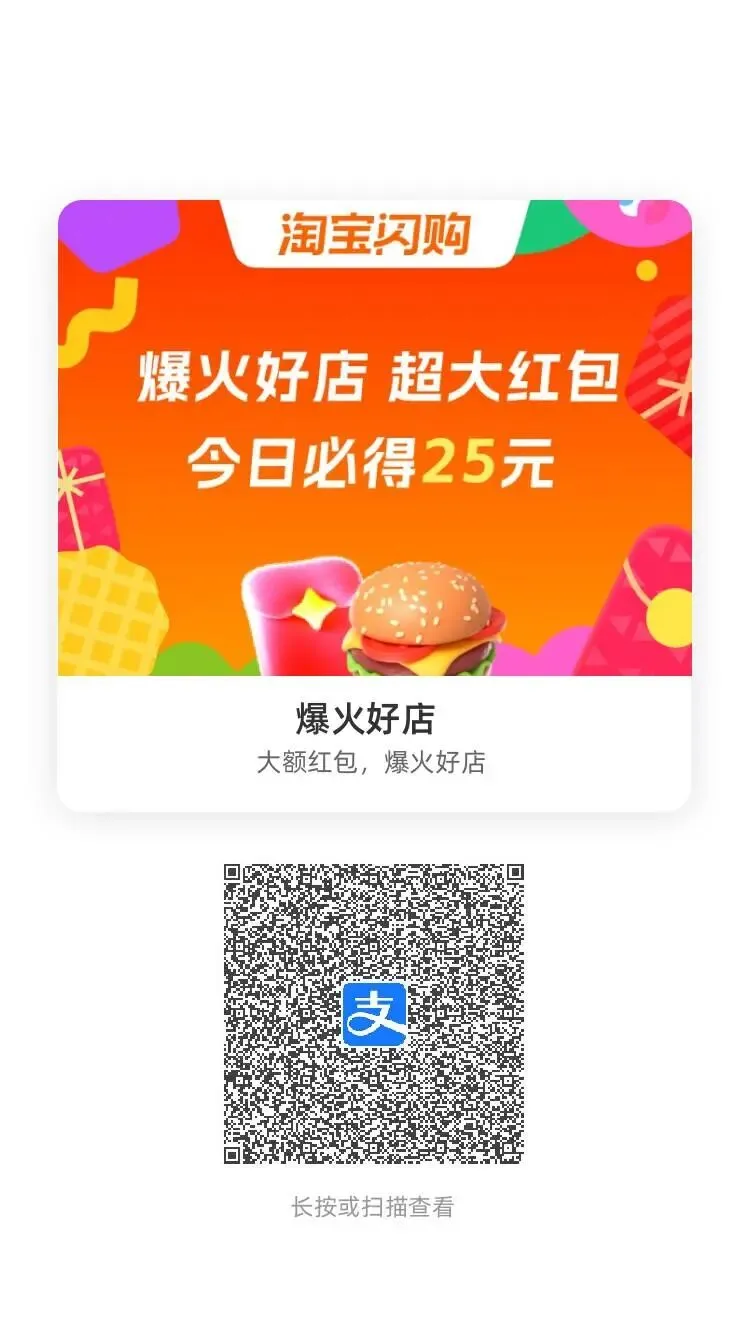 淘宝闪购(饿了么)外卖红包 支付宝APP 吱口令二维码
