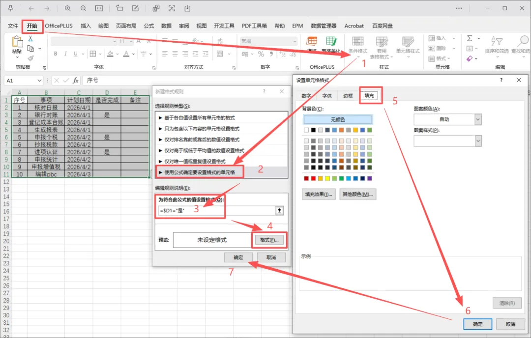 告别手动标色!Excel 条件格式一键让「已完成」任务自动亮色,小白也能学会