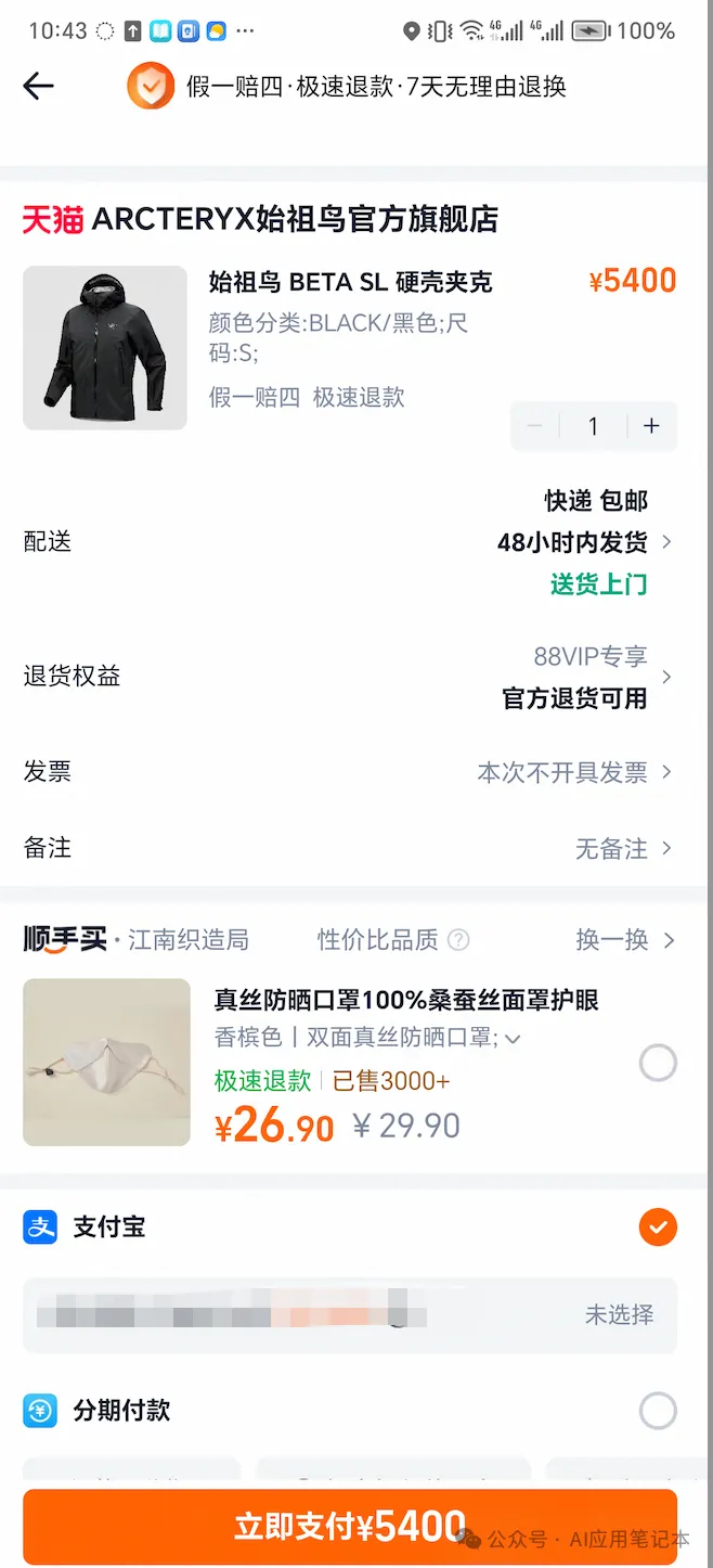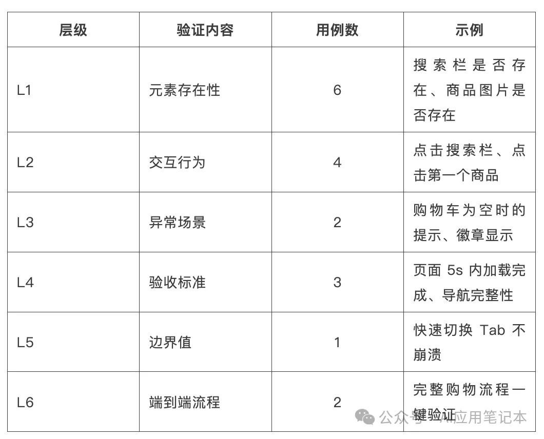 <!-- 店铺名称 --><android.view.Viewcontent-desc="ARCTERYX始祖鸟官方旗舰店" /><!-- 配送信息 --><android.view.Viewcontent-desc="48小时内发货" /><!-- 支付方式 --><android.view.Viewcontent-desc="中国银行信用卡" />六、生成测试用例:L1~L6 六层覆盖