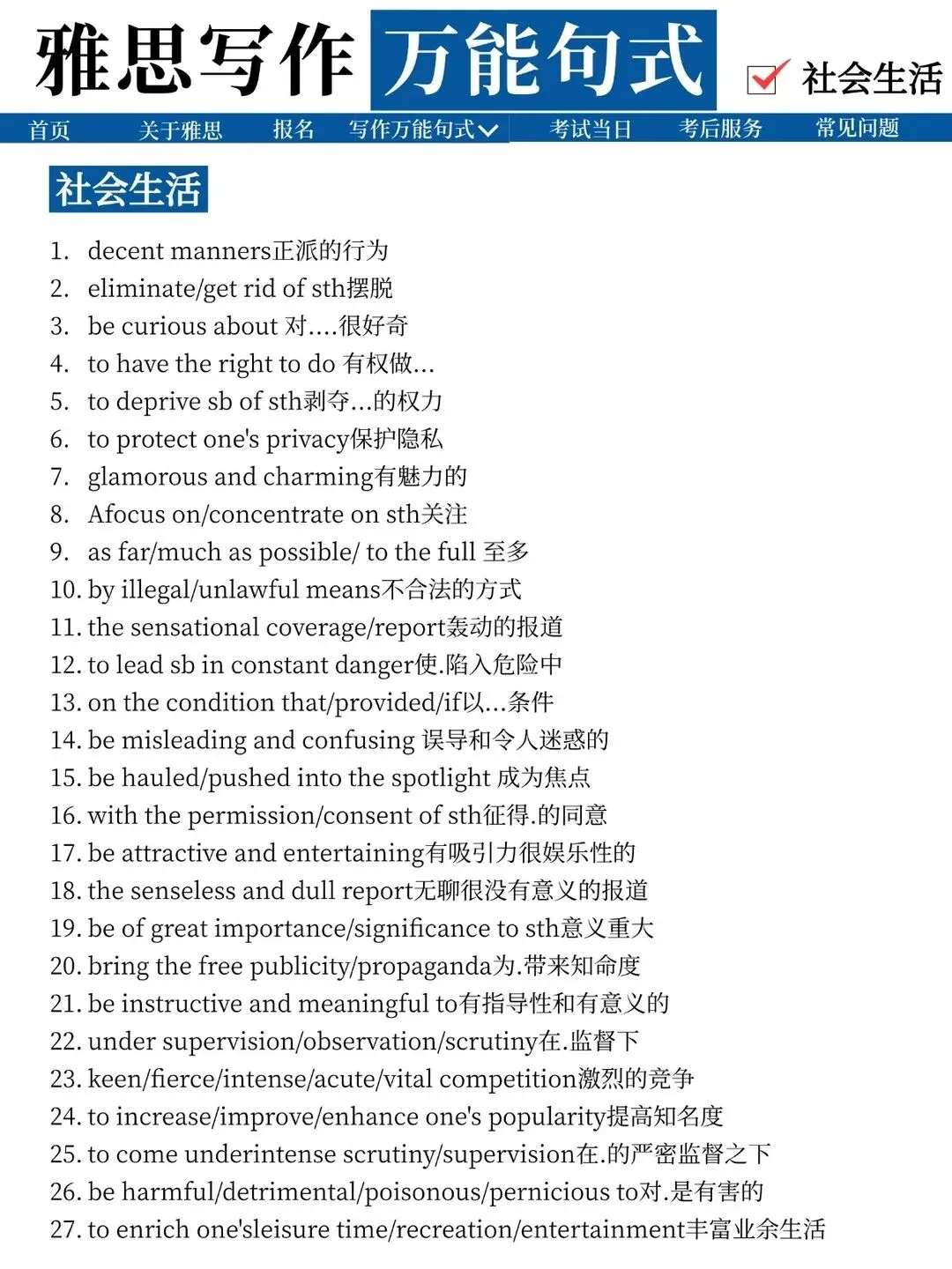 今天整理了雅思写作万能句式