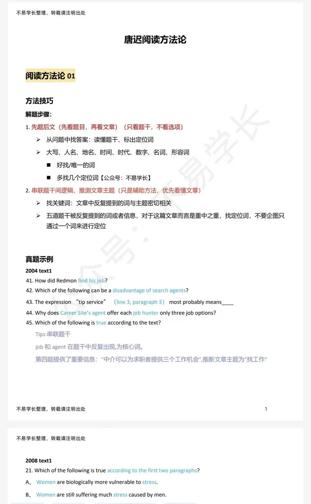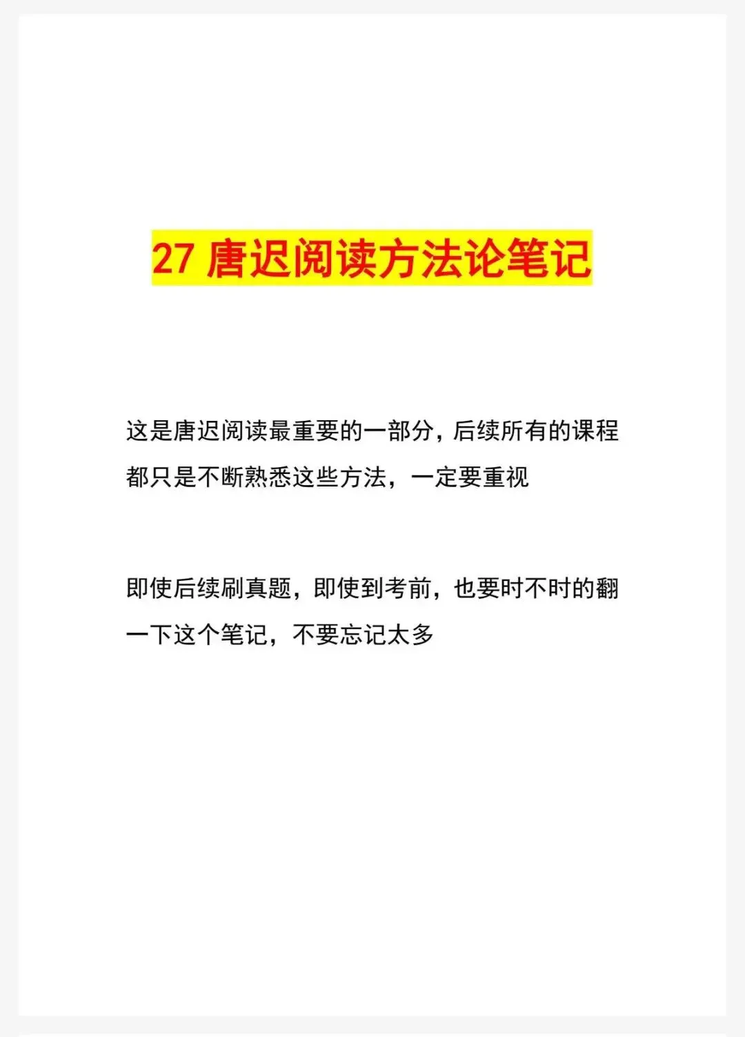 27唐迟阅读方法论笔记可以配合27版阅读方法课程使用,在听课之前先自行阅读方法论,避免盲目做题,可以事半功倍!