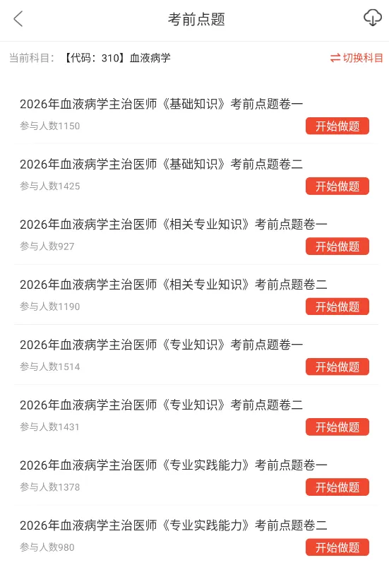 血液病学中级考试题库,职称考试刷题软件,章节习题模拟试卷