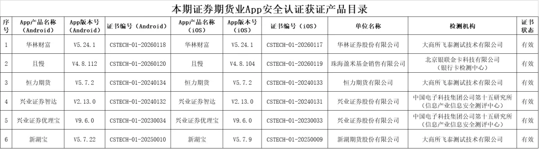 “华林财富”等6款App通过证券期货业App安全认证