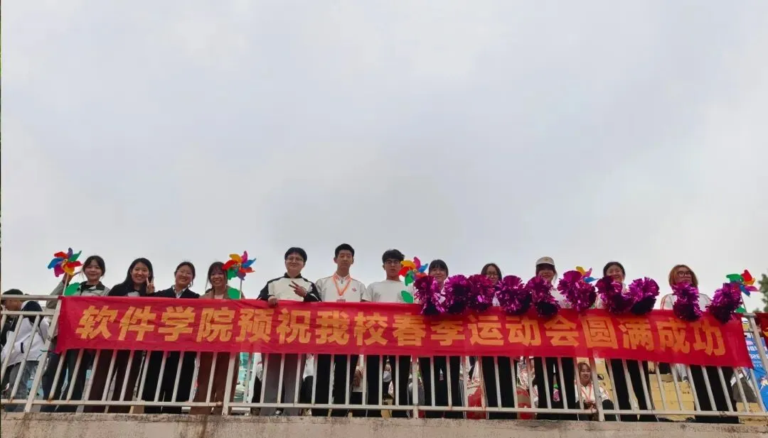 观众席上掌声雷动、呐喊不息,软院师生热情高涨,用最真挚的呐喊为健儿加油,成为赛场上最温暖的后盾。