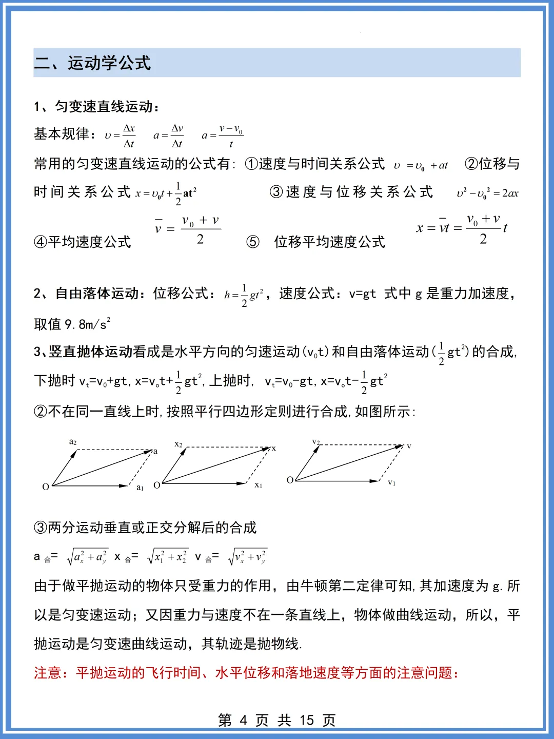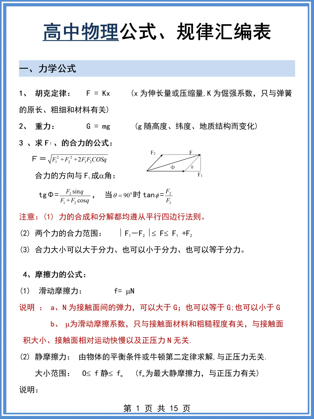 高中物理所有的公式都归纳出来了!考前必看这份公式汇编!两天背完,考试绝对不虚!每次考前都必过一遍!