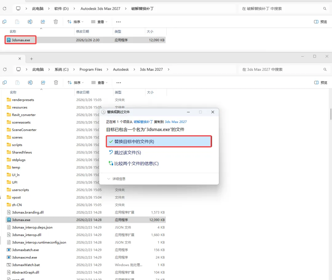 9、将【破解替换补丁】文件夹下的补丁复制至软件安装目录中,点击【替换目标中的文件】。