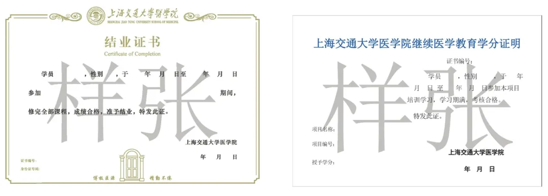 ①上海交大医学院统一颁发的“上海交通大学医学院非学历教育结业证书”;