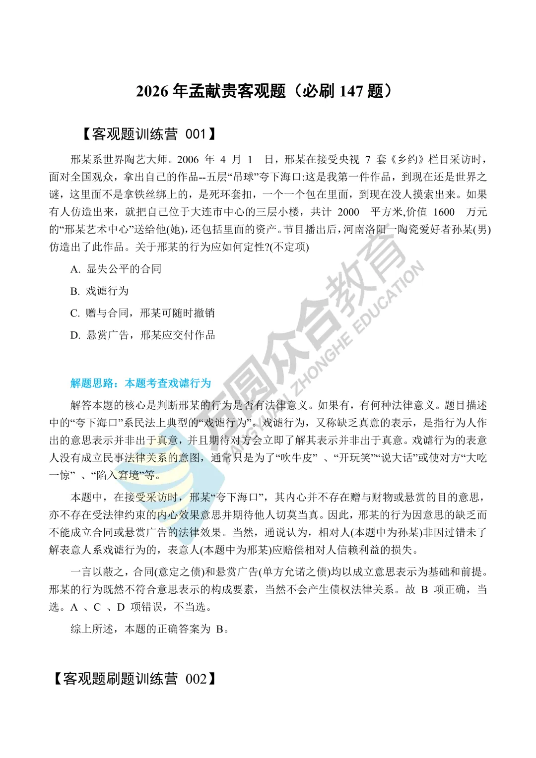 PDF版 / 26法考孟献贵民法客观题(1-147题) 免费领