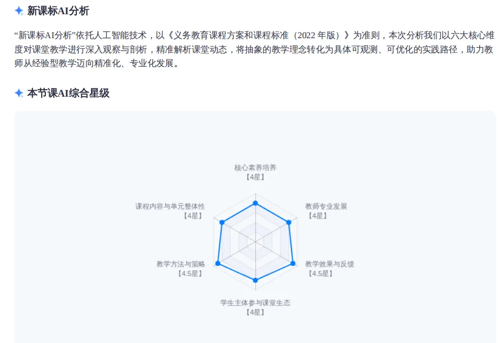 星火教师助手的功能更全面,可以生成教学设计,也支持上传课堂实录等,只是评分标准不同。试用下来星火AI对师生互动指数分析更具体,但是对教室收音设备要求更高。每个月可以免费使用3次。