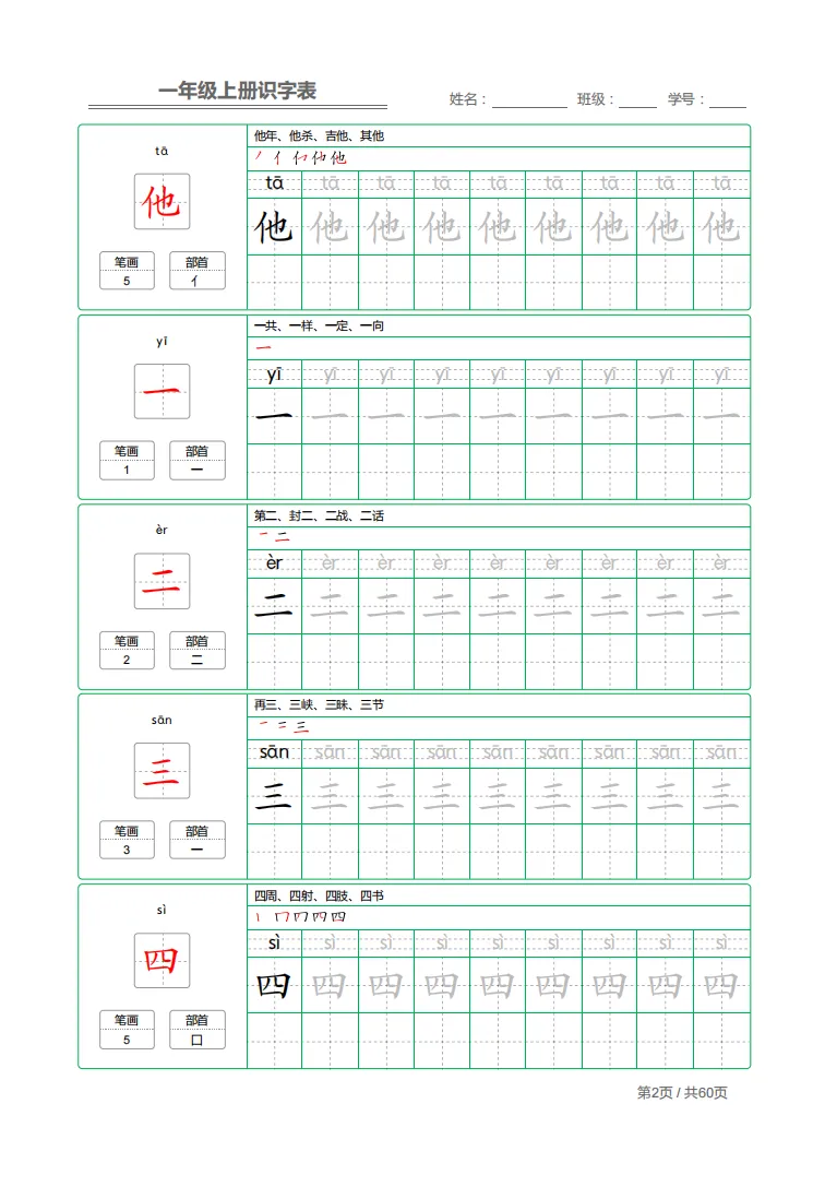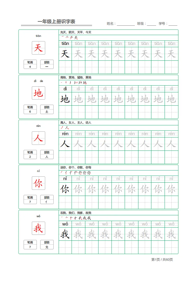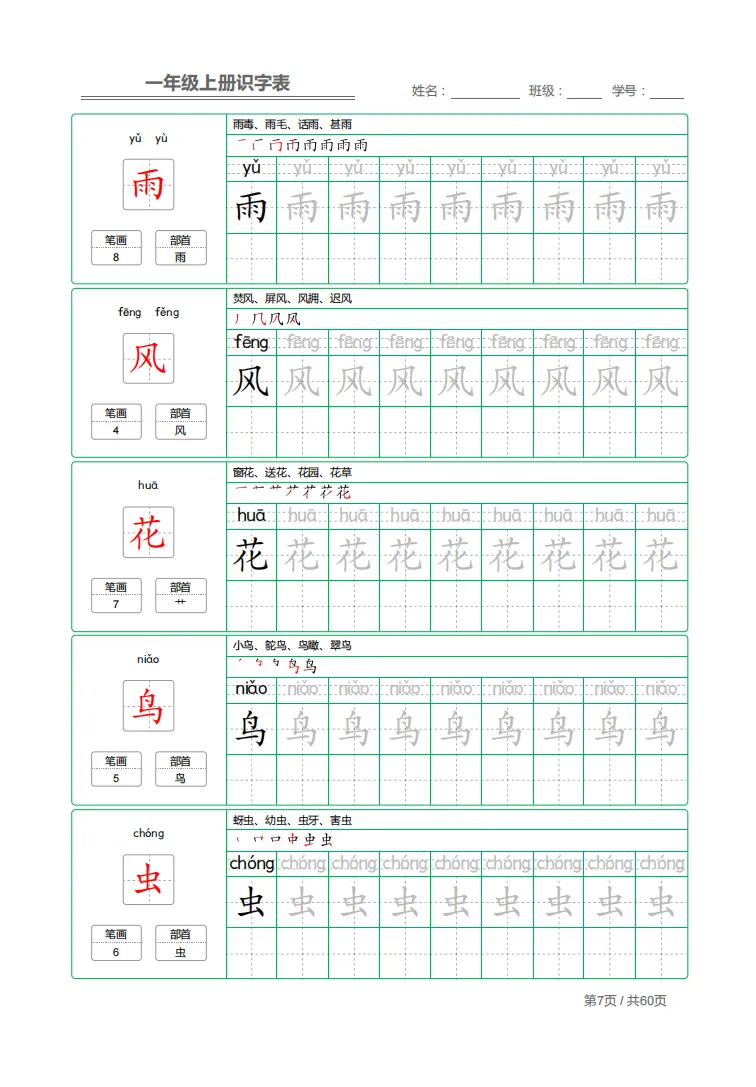 大班娃写字不规范、笔顺总错、识字不牢固?这份识字表 + 同步字帖一步到位!生字 + 拼音 + 部首 + 笔顺 + 描红全包含,边认边写,每天练一页,识字、写字双提升,入学稳稳过渡。