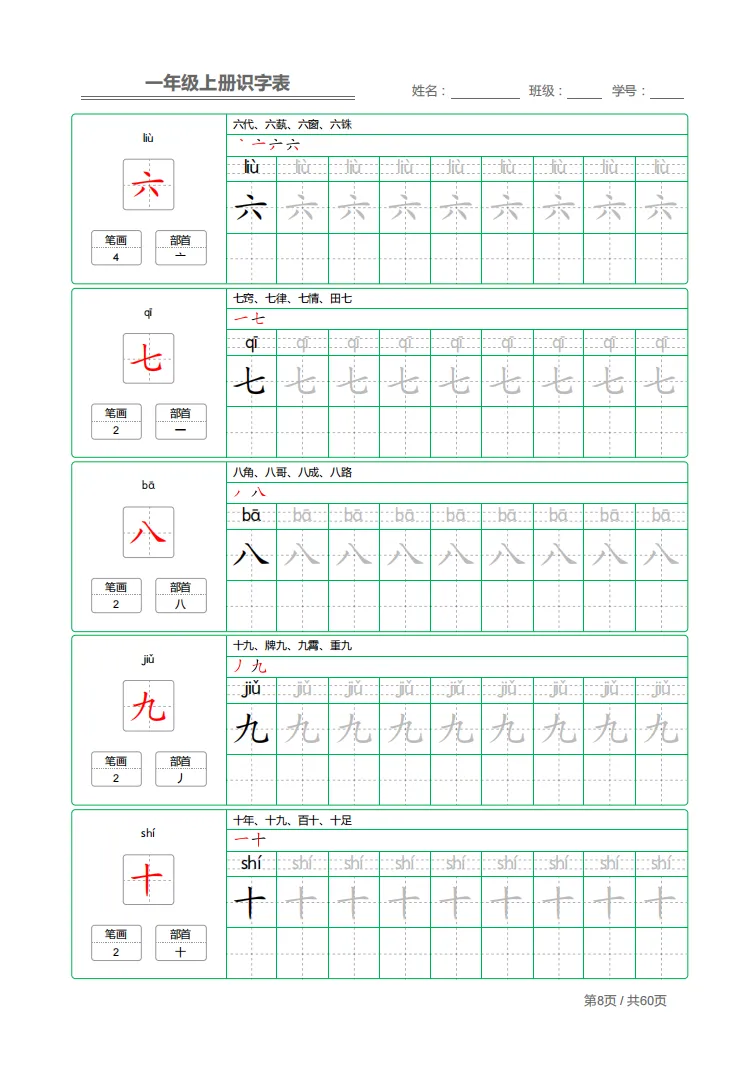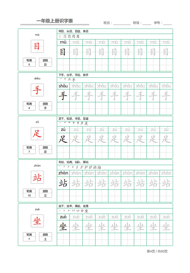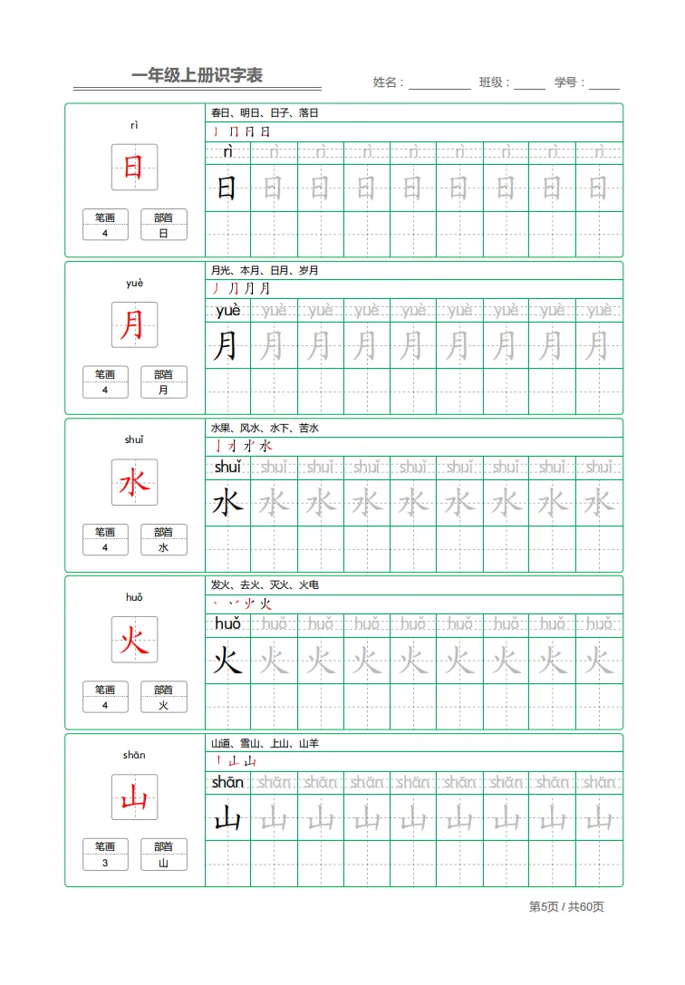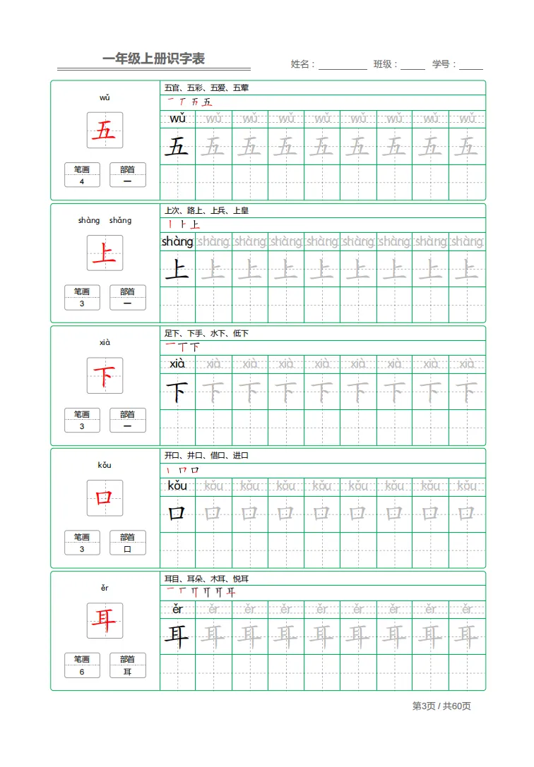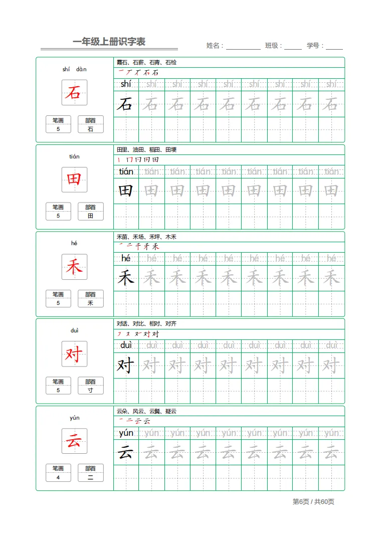 幼小衔接|一年级上册识字表 + 字帖(可下载打印)