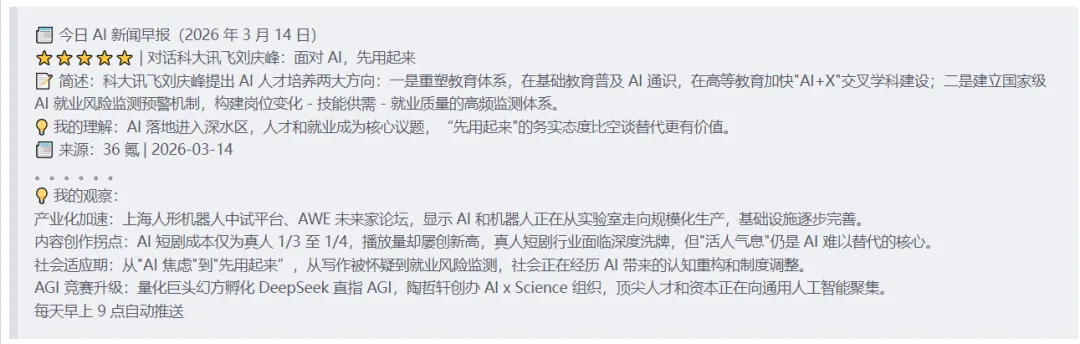 已稳定运行 2 个月,每天自动推送 10 条精选新闻 + 深度洞察。