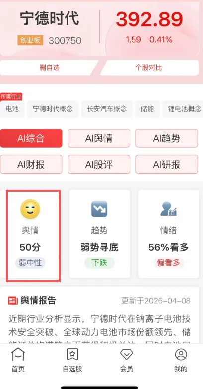 ▶ AI智能分析个股舆情和报告