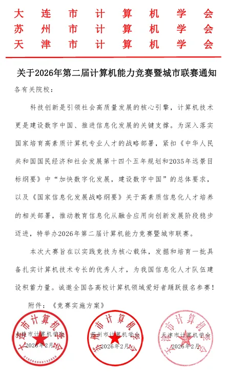 大连市计算机学会、苏州市计算机学会、天津市计算机学会联合共同主办、并盖章证书,三章证书脱颖而出,含金量简直拉满!在25年的首届竞赛中,赛事浏览量超越50万次、达1650所高校学生关注本赛事、覆盖上万人次学生参与、邀请到460名高校教师加入赛事指导!多所院校确认进行加分。同时,包含在北京大学、上海理工大学、山西大学、重庆大学、浙江大学、中国科学技术大学等知名院校学生参与其中,并获得优异成绩!