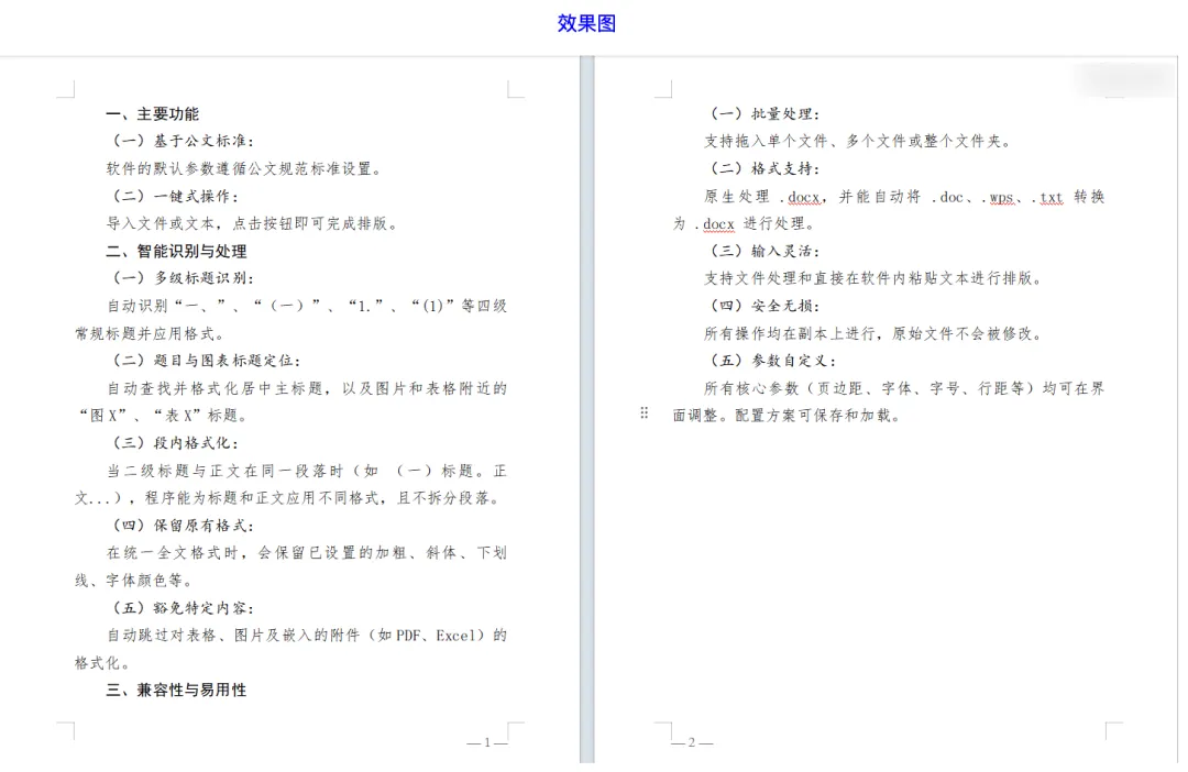 极度舒适的段内处理:哪怕你的二级标题和正文挤在同一个段落里(比如“(一)标题。正文…”),它居然能给标题和正文分别应用不同的格式,而且绝对不会把你的段落强行拆断。