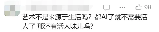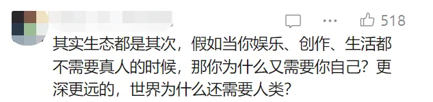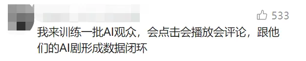 很多网友表示不支持演员AI化,直言:“如果演员AI化,文艺作品还有什么温度可言”、“以后观众也找AI吧”。