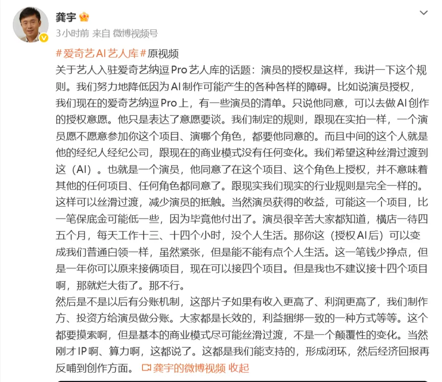 “AI艺人库”上热搜!“真人实拍或成非遗”?爱奇艺回应