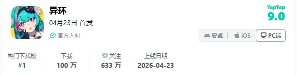 《异环》在全平台公测将于4月23日正式开启,今天 21 号就可以预下载了。目前已经下载超百万。
