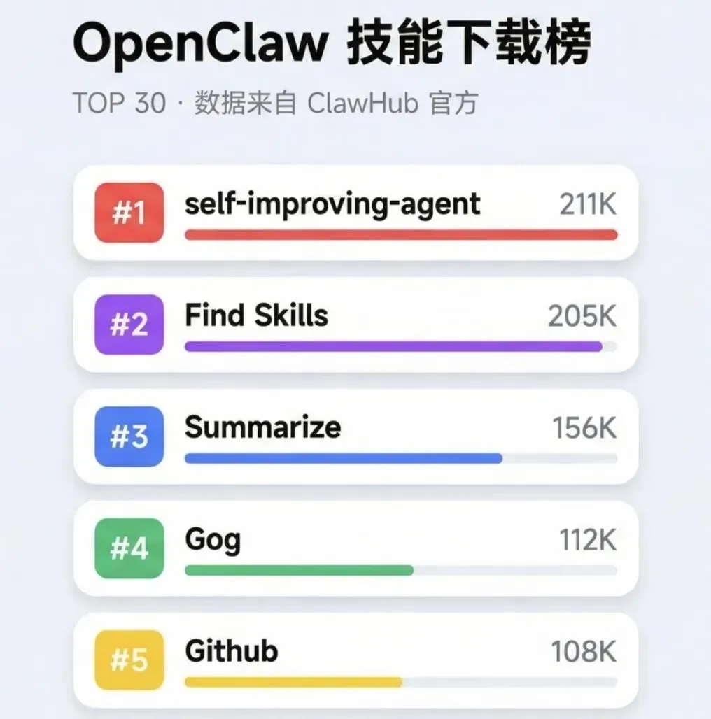 OpenClaw的Skill生态已经相当成熟。笔者实装了66个Skill,涵盖深度调研、技术写作、日报生成等多个场景。ClawHub公共市场上有100+社区贡献的Skill,生态规模类似早期的npm。