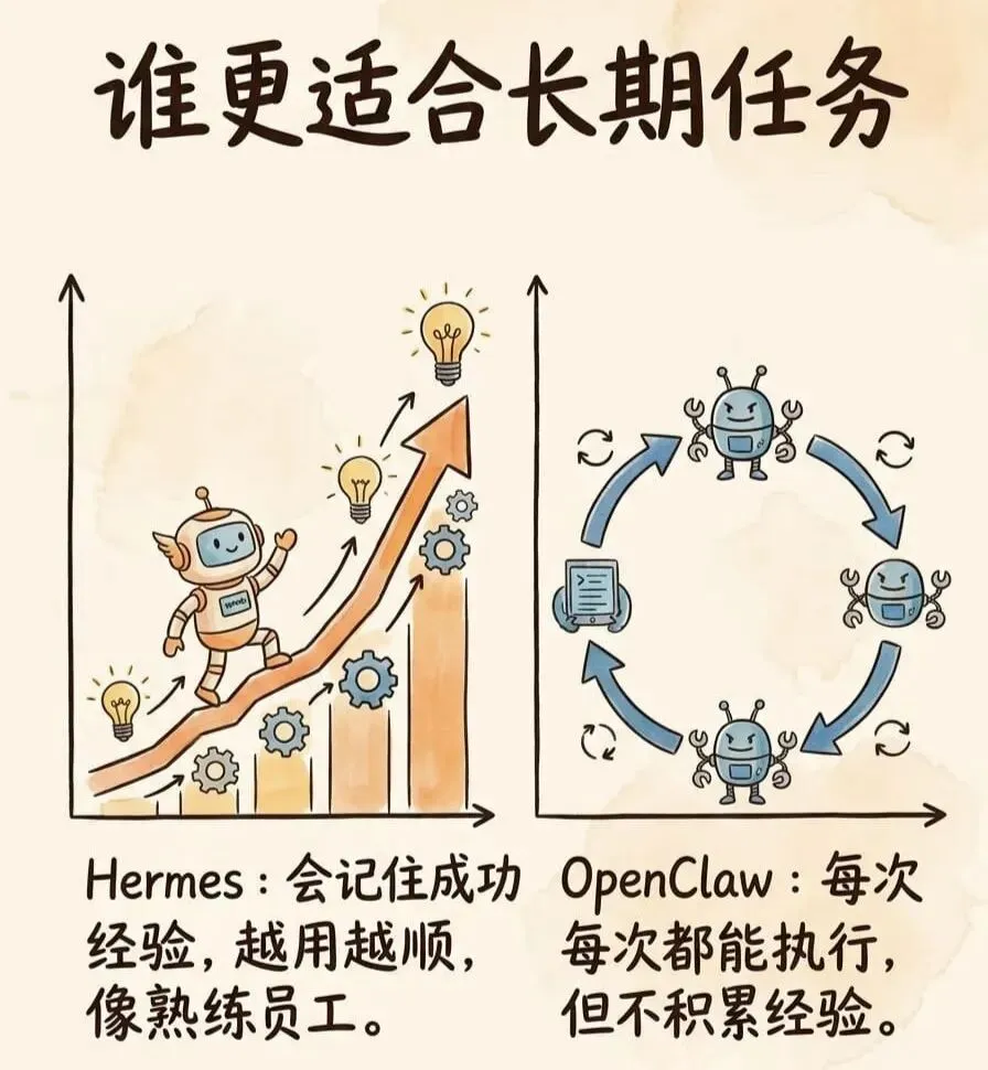 4. 这不是技术选型,而是哲学选择——要稳定可控的运营系统,选OpenClaw;要自我进化的学习伴侣,选Hermes。但最聪明的做法可能是:让OpenClaw管调度,让Hermes管学习。