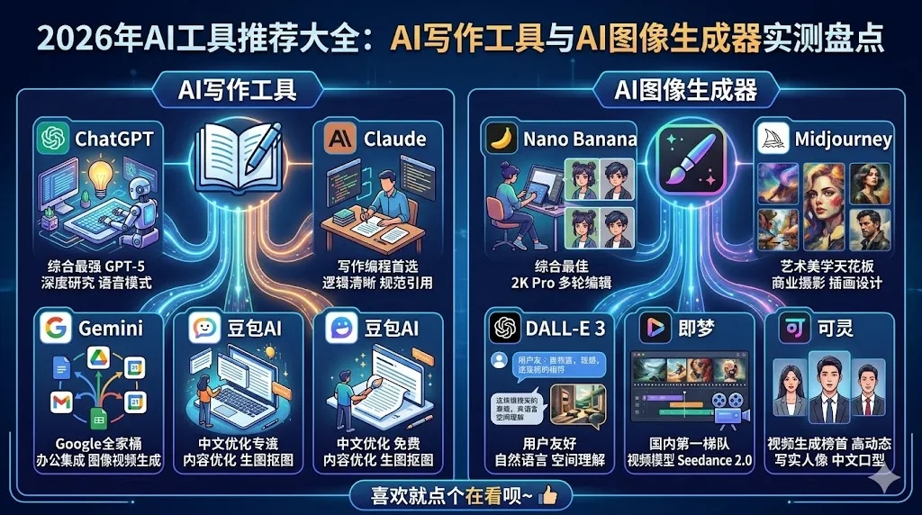 2026年AI工具推荐大全:AI写作工具与AI图像生成器实测盘点