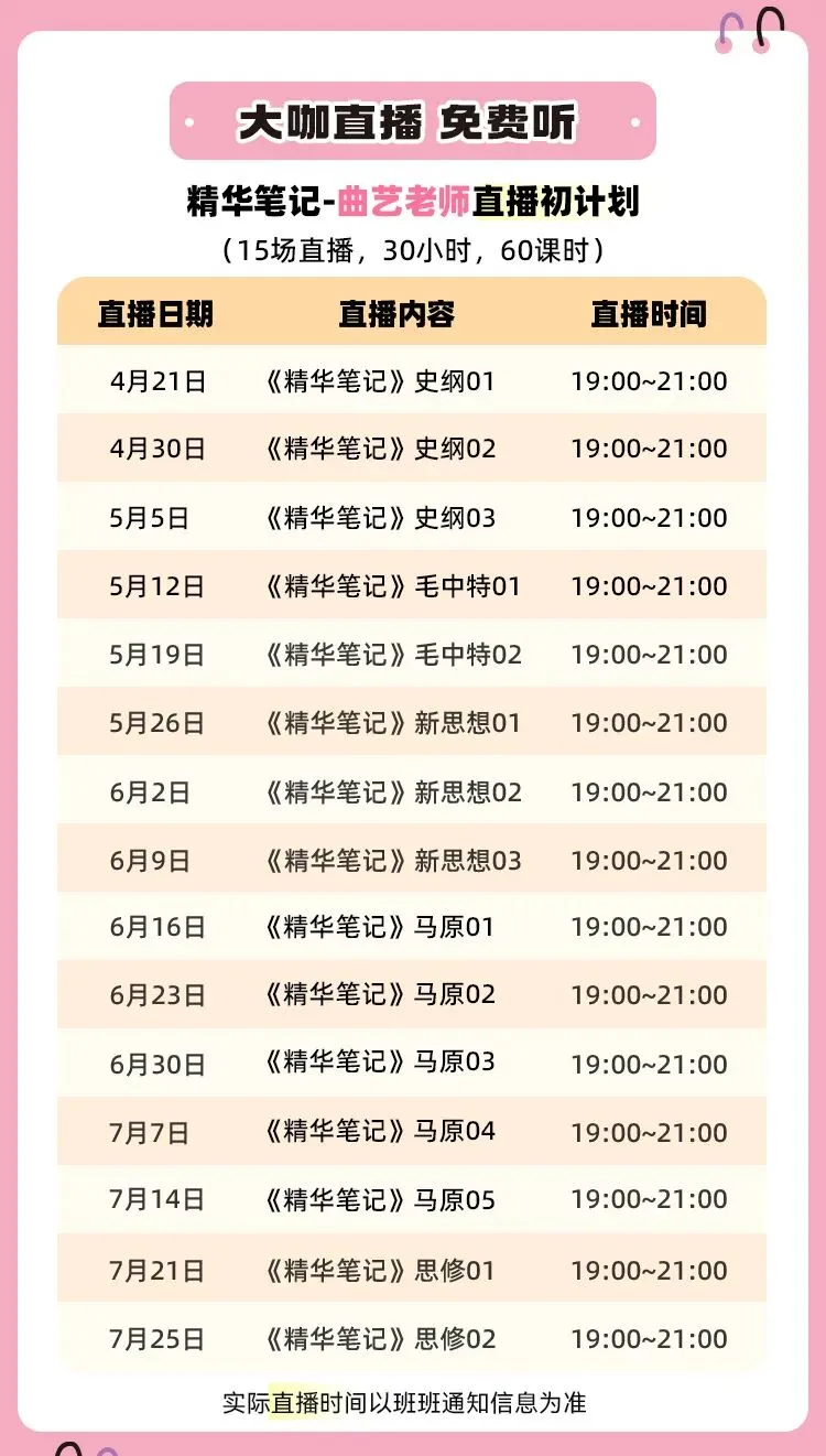 请大家根据调整后的平台和课程安排,提前做好准备,准时参与直播学习!