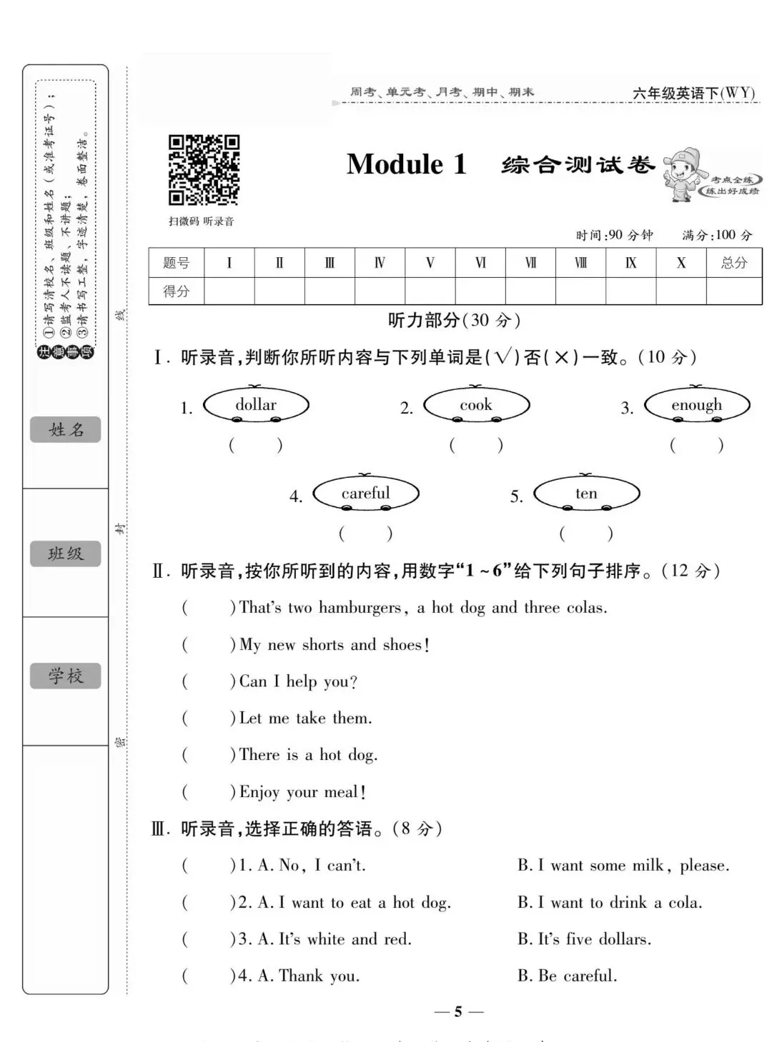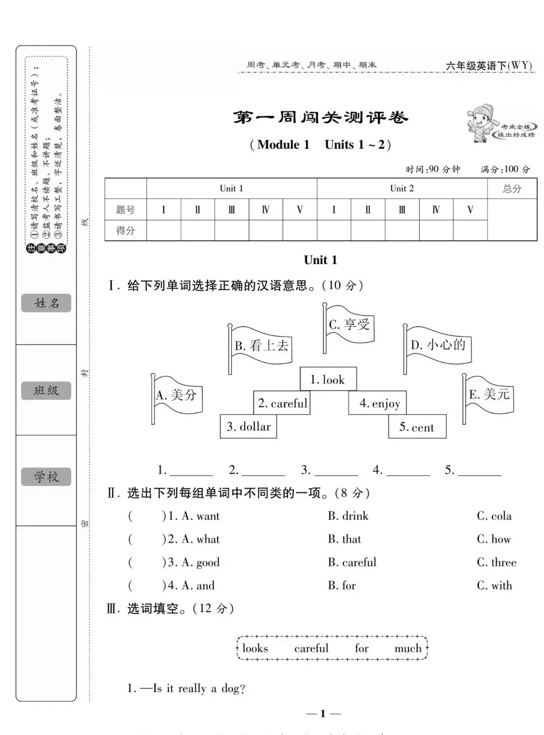 26春外研版六年级下册英语《周考、单元考、月考、期中、期末等试卷》共92页,含答案,可打印.
