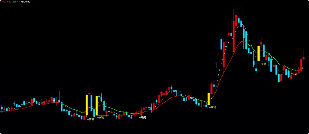 STICKLINE(突破,H,L,0,0),COLOR00FFFF;