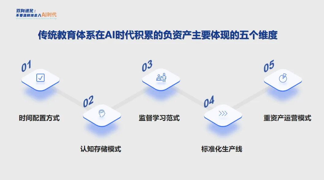 细细梳理,在AI时代,传统教育体系积累的负资产主要体现在五个方面: