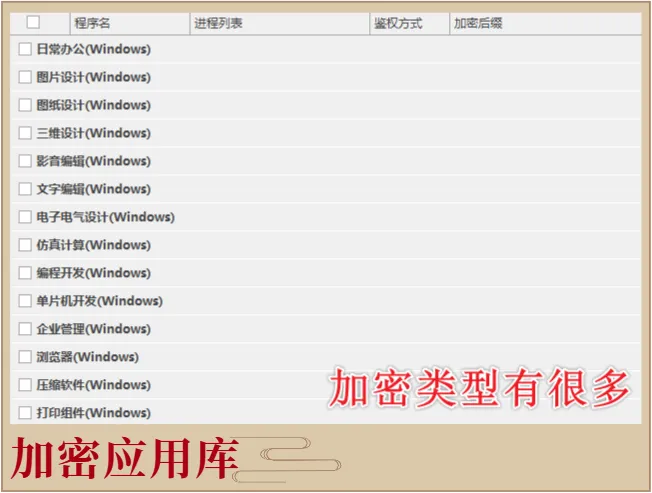 都能加密。选择某一程序后,从该程序中生成的文件,会强制加密,且只能用这一程序打开。