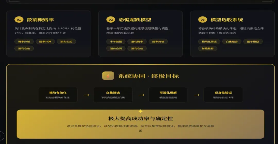 圈子的模型是多模块叠加的低吸模型(散户割肉+超跌+游资思维),不具备统一指向性;