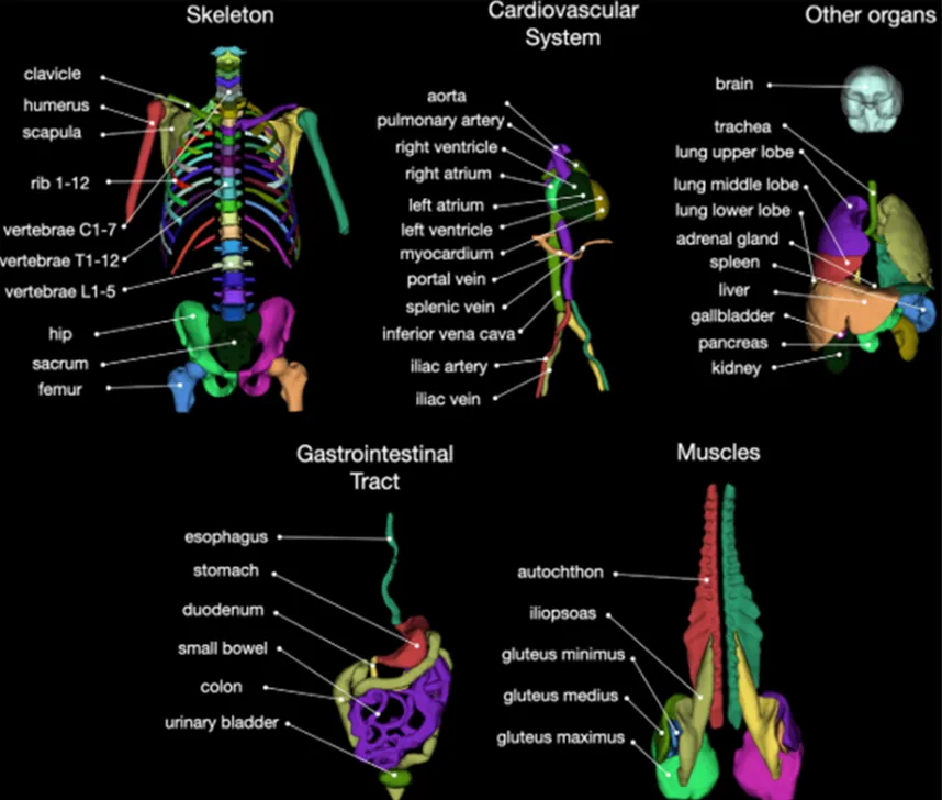 全新版本支持 数百个 ROI 区域(远超之前承诺的104个),覆盖全身主要脏器、血管、骨骼及肌肉群。