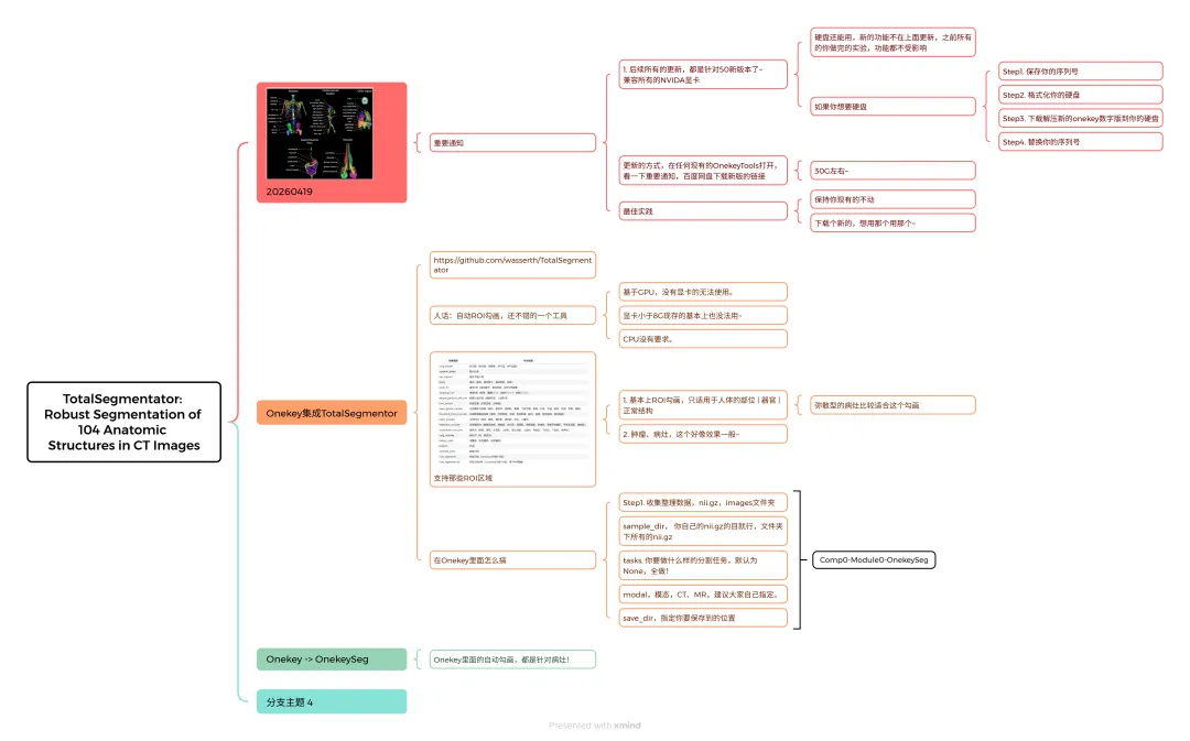 在这个被业界称为“Onekey SIG”的重磅版本中,我们深度集成了 Total Segmenter 这一地表最强的通用分割引擎。从此,告别繁琐的预处理与漫长的调参,迎接真正的 “零代码、全自动、高精度” 科研时代。