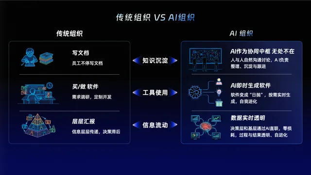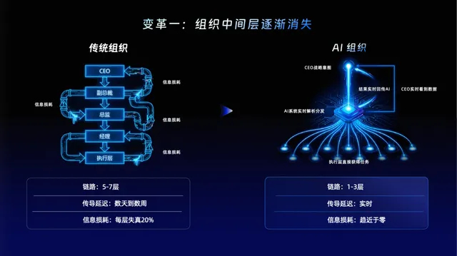 旧的协作体系像是一条漫长的流水线,层层传递中养活了大量以“润色、排版、汇总”为生的职场人。但在以 AI 为底座的组织里,这些工作证明将被无情剥离。