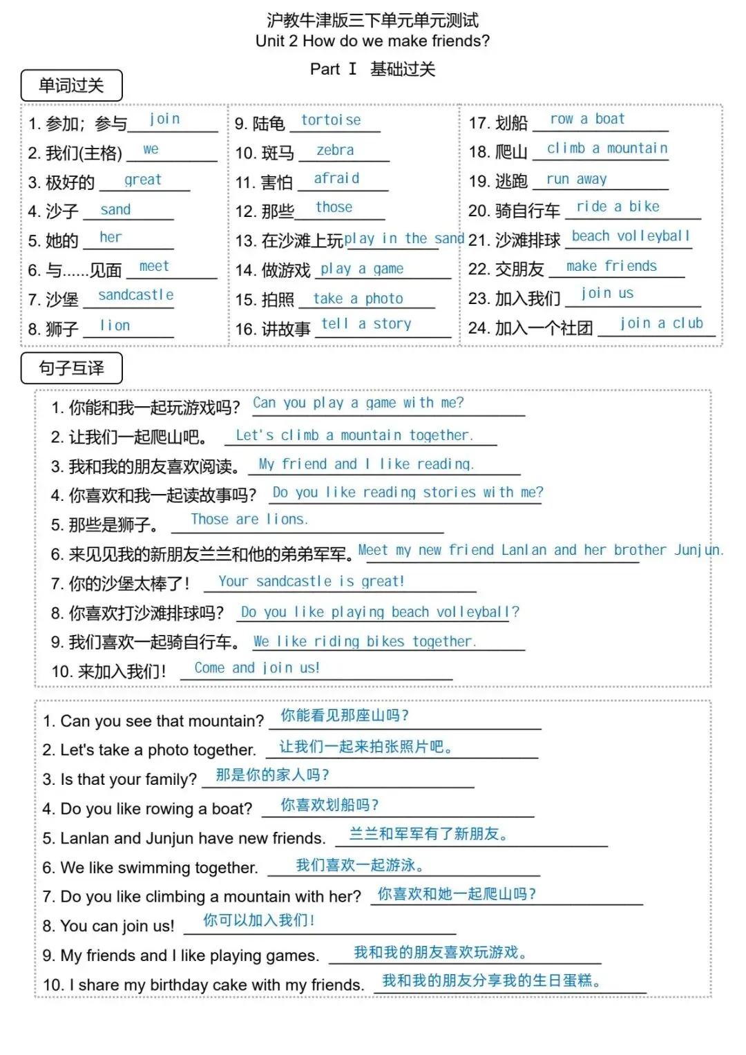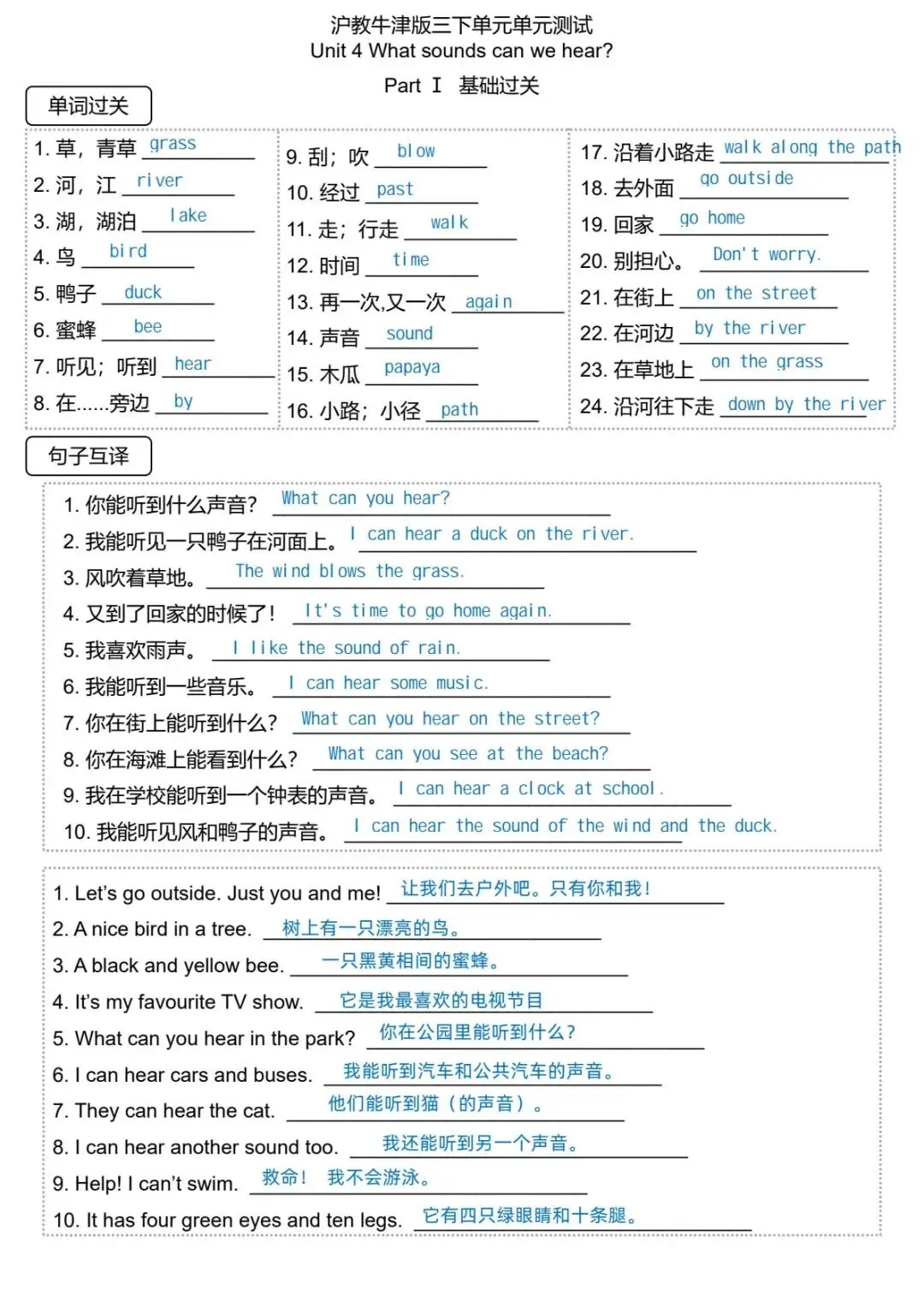 三年级下册英语沪教牛津版【1-8单元测试基础过关+默写版】,电子版可打印可下载。这份三年级下册英语资料紧扣单元基础考点,单词,短语,句子互译完整覆盖,从基础词汇带中英互译句型分层梳理,知识点清晰好记,贴合课本基础题型,适合课前预习,课后巩固,能快速夯实英语基础,高效应对基础考题。